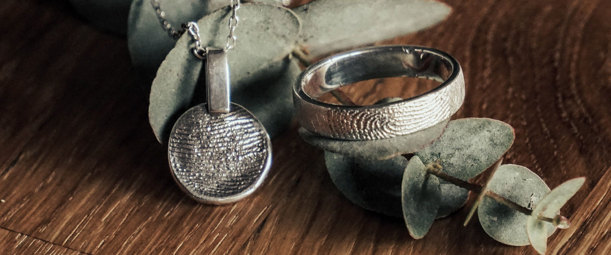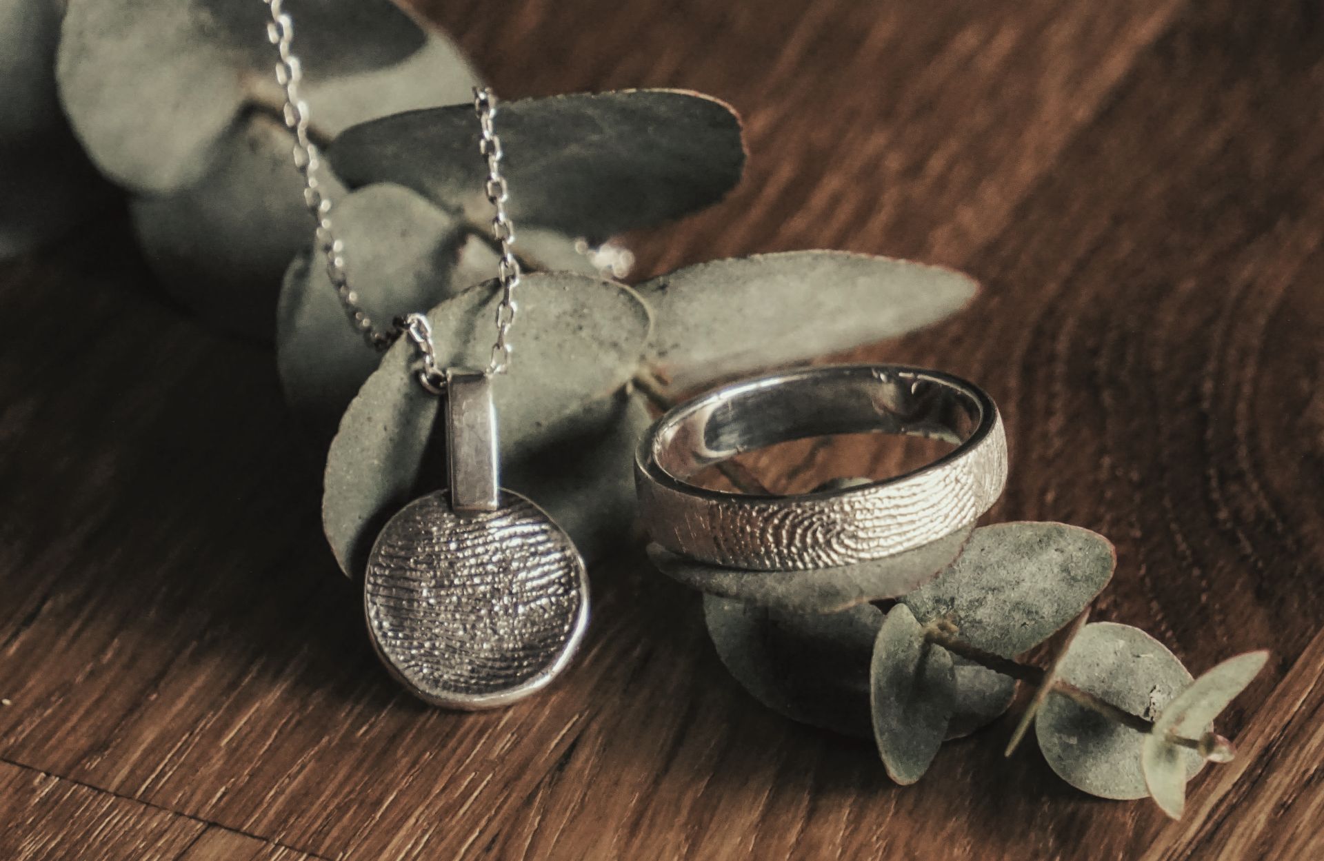 Vielen der von uns begleiteten Trauernden hat es geholfen, wenn sie in dieser ganz besonderen Situation ein Schmuckstück mit dem Fingerabdruck des Verstorbenen anfertigen ließen. Diese Unikate kann man jederzeit auf der Haut bei sich tragen. Man spürt sie, man kann die Rillen des Fingerabdrucks fühlen. Es kann einem Trauernden Halt und Kraft geben und das Gefühl, dass der geliebte Mensch einem nahe ist.
